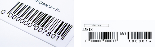 バーコードの種類はJAN13、JAN8、CODE39、CODE128、NW7、ITFなど、色々な種類に対応可能です。