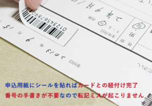 カードをお渡し時にカードからシールを剥がして、申込書に貼り替えるだけで間違いのない確実なオペレーションが可能です。