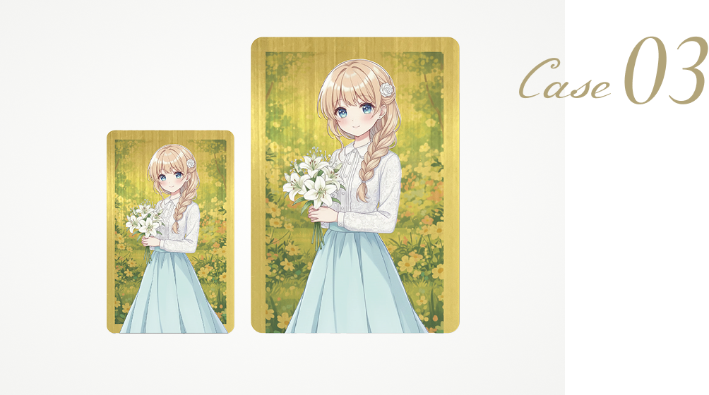 会社の周年記念で配布されるためのカードをご注文いただきました。リッチな質感で特別感があり、大変喜ばれました。
