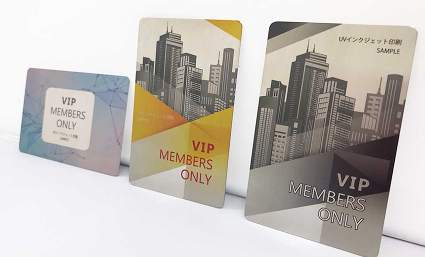 下記は、金メタルカードへUV インクジェット印刷した場合の例です。